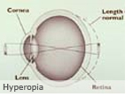 Close vision is impaired, with some impairment of distance vision, as well. The eye is too short in relation to the curvature of the cornea. Light rays are not yet in focus when they reach the retina, so images appear blurry.